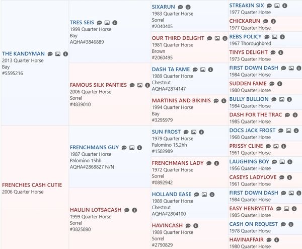 The Kandyman is by Tres Seis out of the winningest futuriy mare of all time Famous Silk Panties. He has produced over $1.1 million in his limited foal crops. Unfortunately he passed away in 2020 at just 7 years old. Trik or Treat was his second foal to compete.